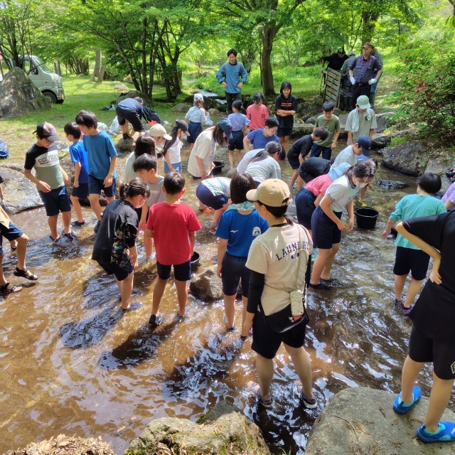 川の冷たさと、マスのすばやさにみんな驚いていました。