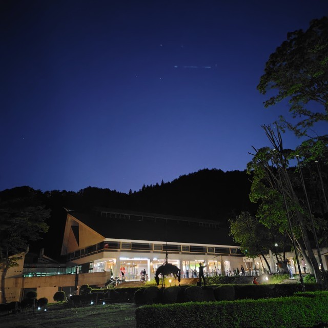 夕食後、辺りが暗くなるのを待ってビレジ前の広場で星空観察をしました。