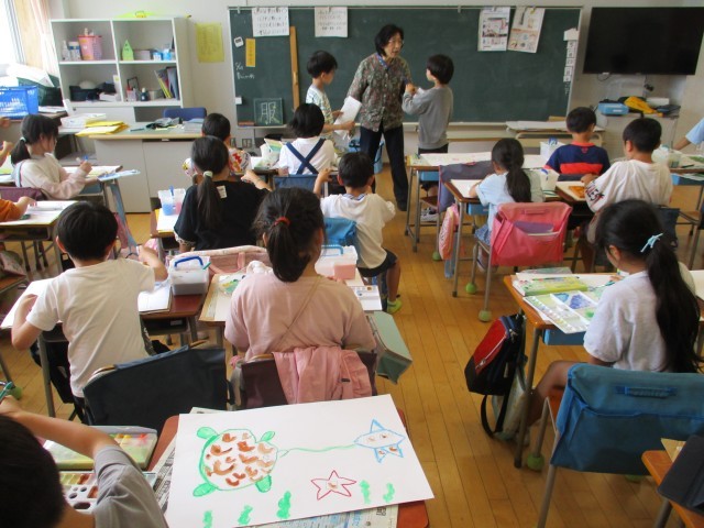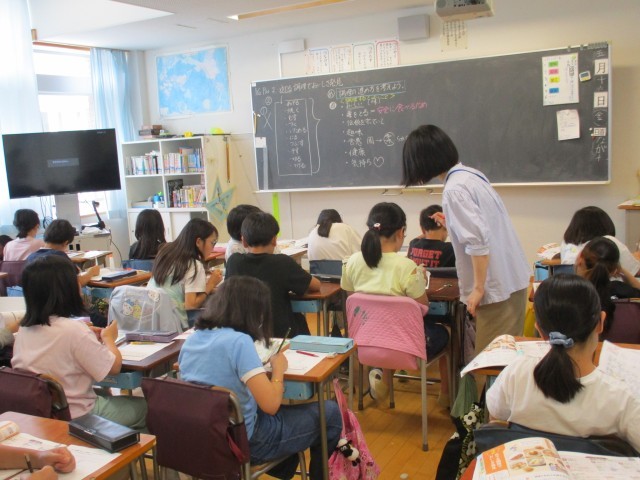 5年生家庭科、5年生算数、3年生図工の学習の様子です。