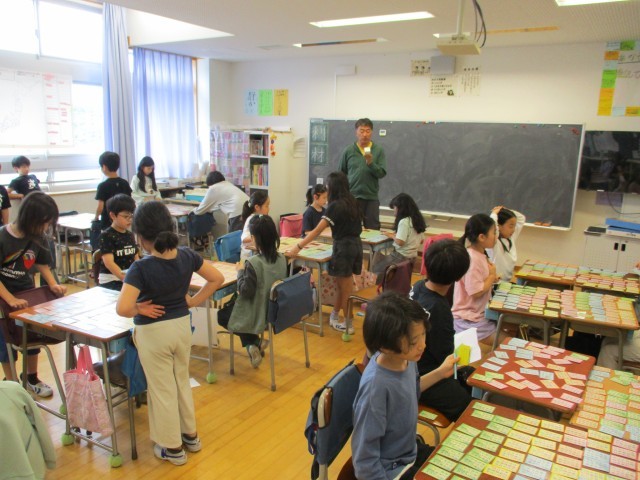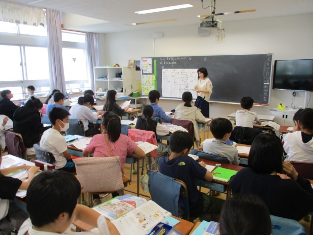 4年生日本語、6年生社会、6年生家庭科の学習の様子です。4年生日本語では、百人一首に取り組んでいました。