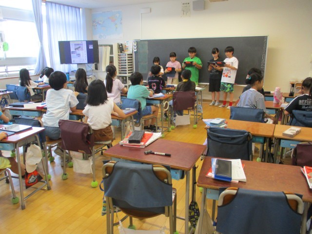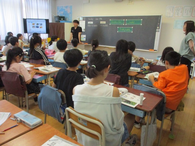 1年生プール、4年生国語、6年生外国語の学習の様子です。