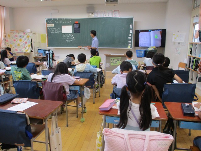 2年生生活科、4年生図工、3年生理科の学習の様子です。