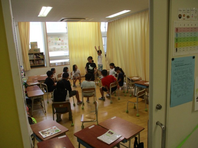 今日のお昼休みは、青がし活動を行いました。気温が高くなったため、外遊びのグループは室内遊びに変更しました。
