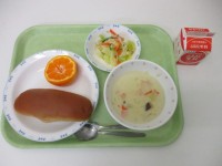 【今日の献立】*黒砂糖パン*くだもの(菊花ぽんかん)*さつまいもシチュー*カ...
