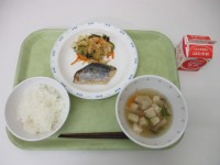 今日の献立*ごはん*さばの味噌煮*和風サラダ*沢煮椀*牛乳主な食材と産地生姜...