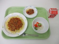 【今日の献立】*スパゲッティトマトソース*有機人参入りピクルス*米粉のいちご...