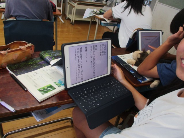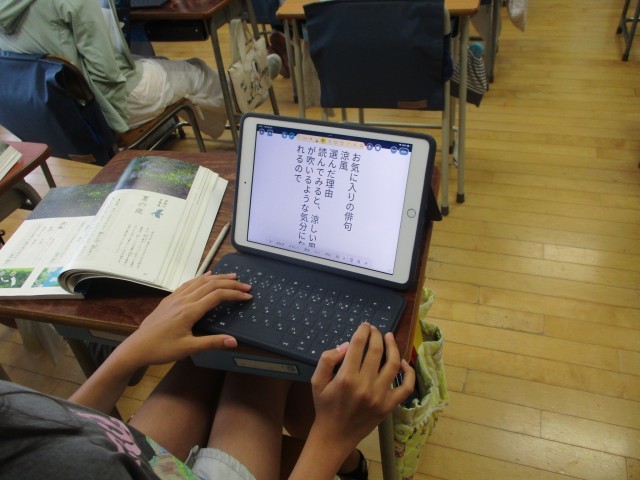 国語の学習で、好きな俳句を選び、その理由をtもだち同士で交流していました。