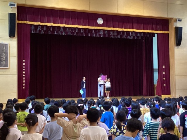 また、代表の子どもたちが1学期の自分の成長や2学期のめあてを発表しました。体育館は温かい拍手で包まれました。
