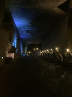 資料館は大谷石の採掘場跡で、外は31度でしたが、資料館内は14度でした。ひんやりとした空気の中、石を切り出した壮大な空間を見学しました。
