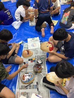 夕顔の実の皮を使って、思い思いに色をつけました。