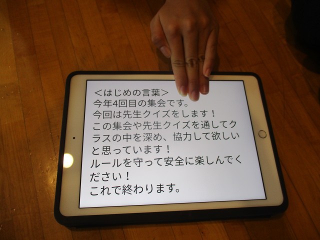 集会後、「みんなが楽しんでくれてよかった。」「とても緊張した。」などの感想を聞くことができました。