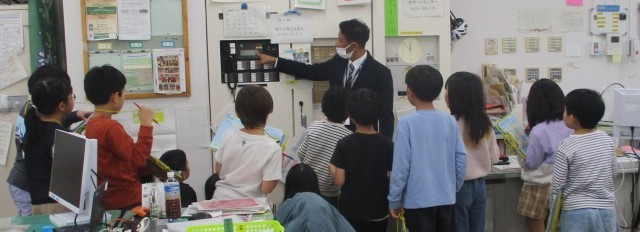 今日は、緊急放送設備見学のため、特別に職員室に入りました。