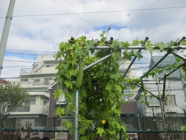 ヘチマを先生に収穫してもらい、ヘチマのさわり心地に「思ったより重い。」「すべすべしてる。」など初めての感覚を味わう声が聞こえてきました。