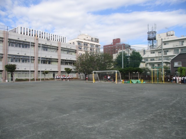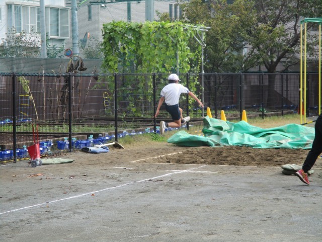 砂場では、体育の学習で走り幅跳びをしている4年生の姿が見えました。