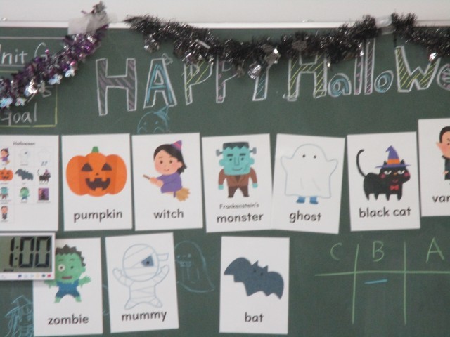 10月末はハロウィンということで、外国の文化に触れる活動を、英語ルームで行っていました。