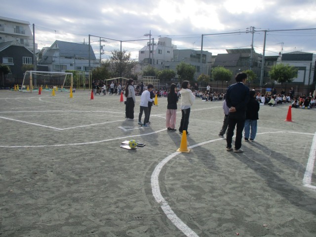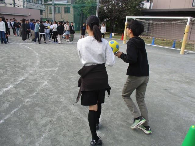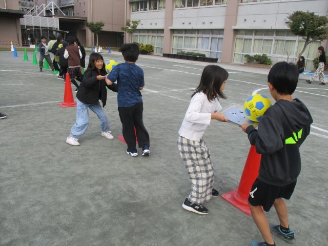低学年は小さいボールにするなど、難易度を工夫して、みんなが楽しめるようにしていました。