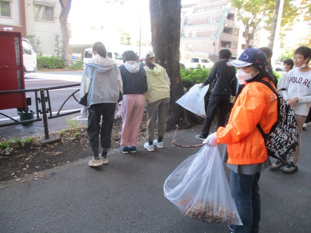 3時間目に6年生が甲州街道方面へ。4時間目に2年生が上北沢駅桜並木へ地域清掃へ出かけました。