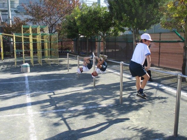 鉄棒では、自分のできる技を増やそうと一生懸命に取り組む子どもたちの姿が見られました。