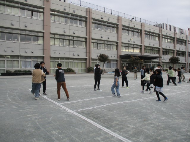 今朝、校庭で「じゃんけんの壁」というゲームをしました。