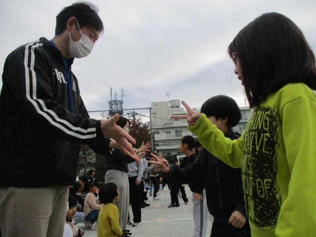 各クラスで並び先生のところまで走って行って、先生とジャンケンをします。