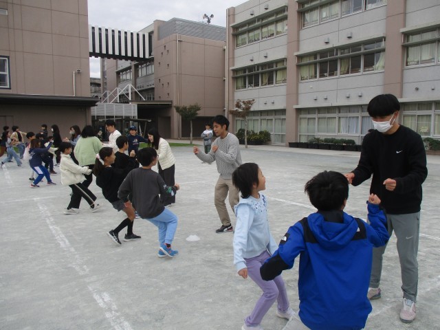 子どもたちは先生に勝ったら先生の後ろに並び、負けたらもう一度初めの列に戻り再びじゃんけんをするというゲームです。