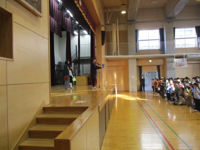 式の終了後には、生活指導の先生から「ふ・ゆ・や・す・み」の頭文字を使って冬休み中にどう過ごすかの話がありました。