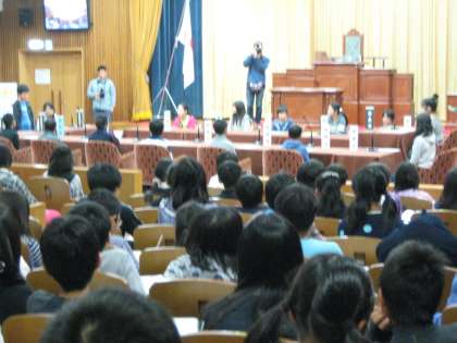 昼食後、国会議事堂参議院の見学をしました。本会議場の傍聴席に座って説明を聞きました。その後、法案成立の体験学習をしました。委員会の様子の再現を見て、最後に全員が議員になり、賛成反対の投票をしました。貴重な体験になりました。