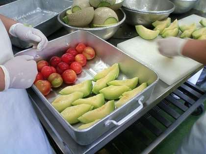 今回の全校の結果は、メロン246人、プラム179人でした。メロンもプラムもどちらも甘くておいしかったとの感想がありました。