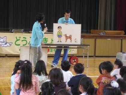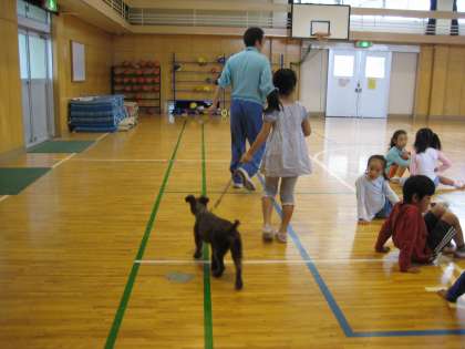 6月30日(火)2年生の動物教室を行いました。講師として、東京都動物愛護センターの方3名に来ていただきました。動物と仲良くするための話、命の話、犬のさわり方や散歩の仕方などについて、教えていただきました。かわいい犬3頭、ウサギ1匹を連れて来ていただき、実習をしながら学びました。