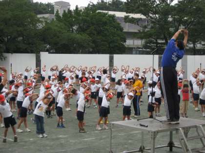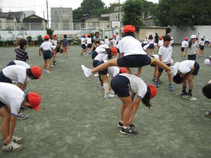 7月1日(水)は体育朝会がありました。今回は「馬とび」に挑戦です。二人とびから行い、中・高学年では人数を増やして行いました。校庭で元気に馬とびを楽しみました。