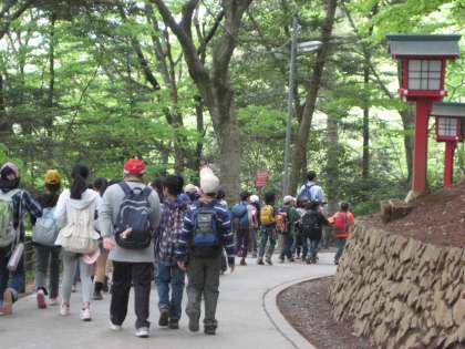 4月25日(木)は、5,6年生の遠足でした。心配した雨も上がって、さわやかなお天気になりました。高尾山につくと、5,6年生合同のグループで登り始めました。途中のチェックポイントでは、5年生を気遣いながら声をかける6年生の頼もしい姿が見られました。けがもなく、全員が最後まで歩ききりました。頂上からの景色は素晴らしく、おいしい空気を吸いながら、お弁当を食べました。帰りは、スリル満点のペアのリフトで下山しました。