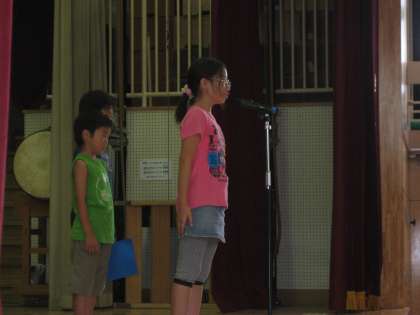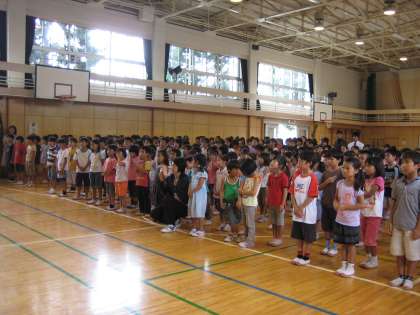 今日で1学期の学習は終わりです。3校時に終業式を行いました。校長より、子どもたちの1学期のがんばりをほめ、夏休みの過ごし方の話をしました。そして、1年生、3年生、5年生の代表の子どもが、1学期にがんばったことや夏休みに楽しみなことをお話しました。今年の夏休みは、土日を含めて45日間になります。楽しい体験をたくさんして、元気に過ごしてほしいと思います。9月に一段とたくましくなった子どもたちに会えることを楽しみにしています。保護者の皆様、地域の皆様、1学期のご協力・ご支援ありがとうございました。