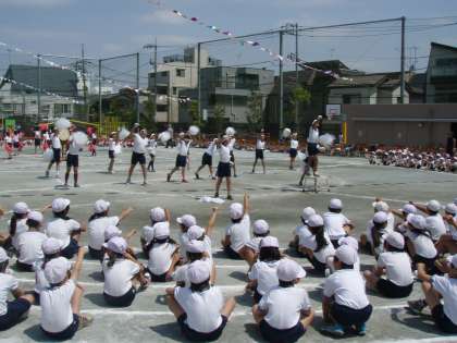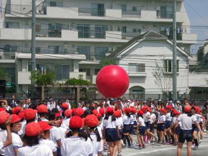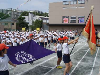 5月25日、さわやかな天気に恵まれて、新しい校庭で初めての運動会を開催いたしました。会場には、全校で作った「オリジナル万国旗」がはためき、赤白の応援団長を中心に応援合戦も盛り上がりました。子どもたちは、「力を合わせて作ろう 最高の運動会」のスローガンの下、どの競技にも全力でがんばりました。