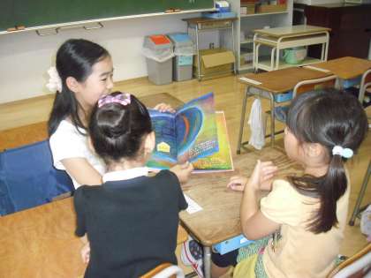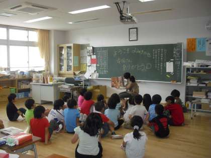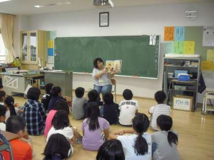 読み聞かせは、火曜日と木曜日に図書サポーター方に来ていただき、朝の15分の間にすてきな本をそれぞれの教室で読んでもらいました。図書サポーターには、地域の方やお家の方々になっていただいています。