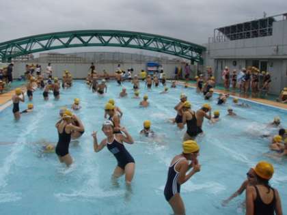 応援にも熱が入り、本番さながらの盛り上がりとなりました。昇降式のプールにも感動した子どもたちでした。