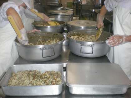 9月の給食は2日(水)から始まりました。今日はごぼうを使った混ぜごはんです。給食の混ぜご飯は、ごはんを炊飯器で炊き、具を釜で煮て最後に合わせるという方法で作ります。今日は暑かったので残りが少し多くなってしまいましたが、しっかり食べて夏の疲れに負けない体をつくりましょう。