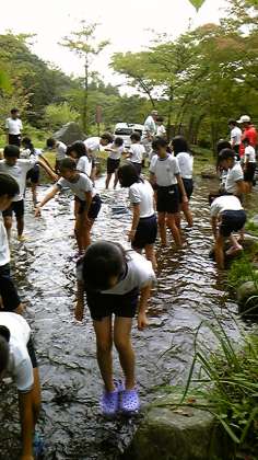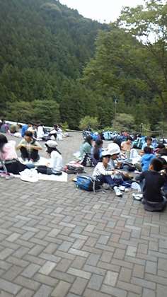 10月9日、5年生は川場移動教室に出掛けました。バスは順調に進み、昼前にふじやまビレッジに到着しました。広場でお弁当を食べ、その後ますつかみをしました。恐くてなかなか触ることができない子もいましたが、一人一匹つかみ大興奮でした。
