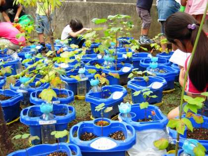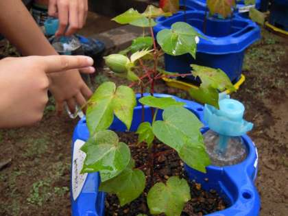 夏休み中にお家でお世話をしてくれたわたが、だいぶ大きくなりました。花の色の変化に気づいている子ども、葉の大きさの違いや実の形を注意深く観察する子ども、わたがどのようにできるのか楽しみにしている子ども、どの子どもたちも一生懸命お世話をして観察しています。