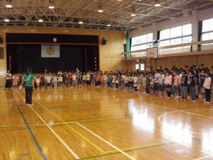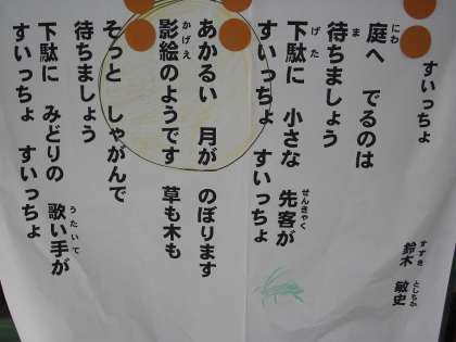 9月30日 音読朝会が行われました。『すいっちょ』の詩を読みました。まず最初に、全員で読みました。その後、タンバリンのリズムに合わせて読みました。全員がリズムに合わせて読むのは難しかったのですが、2回目に全員のリズムがあいました。次に、動作をつけて読みました。いろいろな読み方を楽しみました。