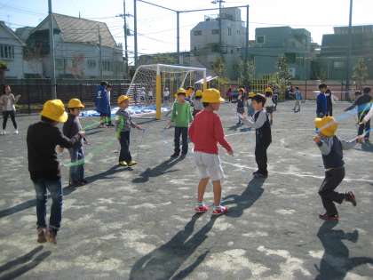 前とび・後ろとび・あやとび・交差とび・二重とび・前振りとびなど、いろいろな技に挑戦したり、1分・2分・3分の持久とびをがんばったりしています。学級みんなで、長なわとびの練習もしています。