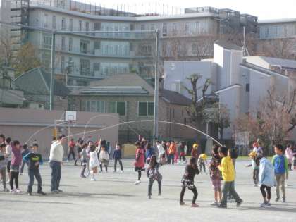11月19日から、なわとび月間として、子どもたちはなわとびを通して体力づくりに取り組んできました。中休みは、全校児童が校庭に出て、なわとびをしています。
