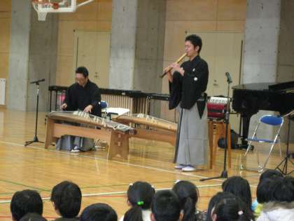 1月11日(土)3学期の国際理解集会を行いました。今回は、琴と尺八の演奏家をお招きして、日本の文化を学びました。