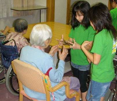 最後にお年寄りの方々と一緒に「ふるさと」を歌いました。