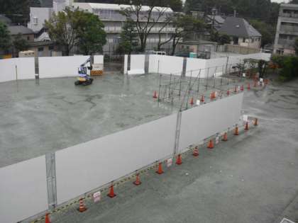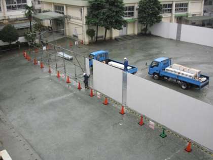 校庭に設置されていたフェンスの場所が、より校舎に近いところににつくりかえられます。いよいよ仮校舎建設のための準備が本格的にスタートです。