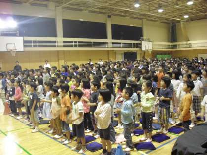 今年の演劇鑑賞教室は劇団未踏による「未踏の大ひょ〜うげんをめざせ」でした。各学年から代表の児童が壇上でパントマイムに挑戦!!みんな上手にできました。前半の劇「くまわらう」もからだを使った大きな動き、和風の楽器をたくさん使ったものでとても新鮮でした。