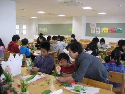 6年生は、あと13日で卒業です。6日には、お世話になった地域の方々に贈るため、フラワーアレンジメントにチャレンジしました。お花の先生に教えていただき、みんな真剣な表情で作成しました。もらった人が喜んでくれるように、心をこめて作りました。