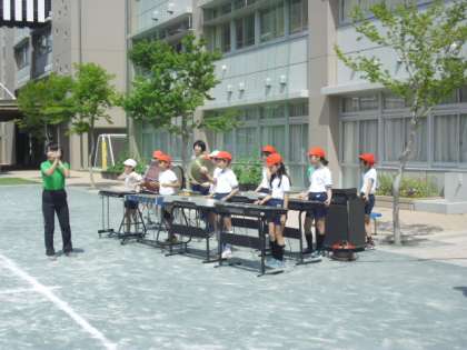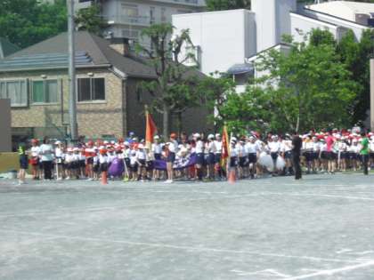 今週末の運動会にむけて、全校練習が行われました。入場行進や開会式の流れ等を確認し、応援歌やエール交換などを行いました。月曜日の朝、1時間目の練習でしたが、子どもたちはしっかりと取り組むことができました。器楽委員会の子どもたちが、運動会の音楽係としてさまざまな伴奏に大活躍、立候補者が多かった応援団は、大きな声とチームワークで大活躍しました。本番が楽しみです。