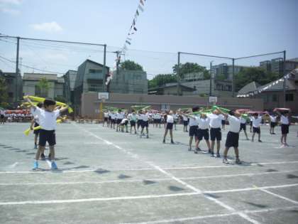 1年生は初めての運動会でしたが、暑い日差しの中、最後までよく頑張りました。「チルドレンズ シーズン」は、いろいろな動きに合わせて、カラフルな布が輝いて見えました。よく覚えましたね。感心しました。