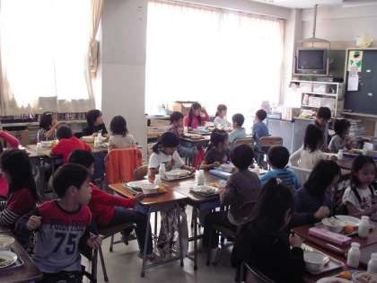 実りの秋、旬を迎える食べ物が多い季節です。今日はさつまいもときのこがたっぷり入った混ぜご飯と、今が旬の鮭か鯖を選ぶ秋らしいセレクト給食です。上北沢小では焼き魚を調理する時、塩をふってスチーム(蒸気)を入れて焼いたあとに風味づけのしょうゆをかけて、そのあとはスチームなしで焼いています。すると中はジューシー、表面はパリッと仕上がります。