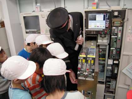 駅には、自転車も乗れるエレベーター、波形の手すり、トイレの緊急ランプ等、たくさんの工夫があることを知りました。また、券売機の裏側を見せていただき、2秒で出来上がる券を目の当たりにして、みんな目を丸くしていました。